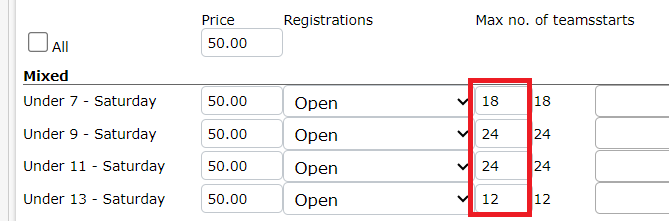 To set (or change) the maximum number of teams for each category, follow these instructions: